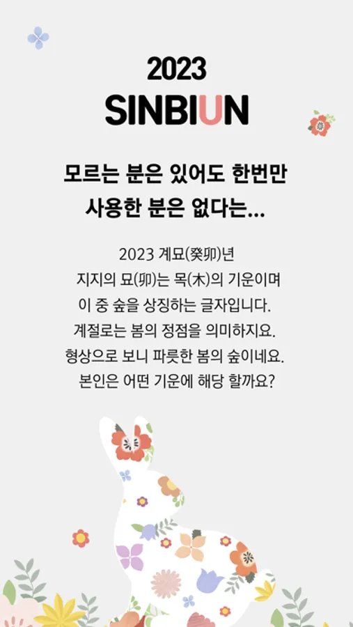2023년 계묘(癸卯)년! 검은 토끼의 해입니다. 본인의 기운을 어떻게 활용할 수 있을지 지금 무료로 확인해 보세요.