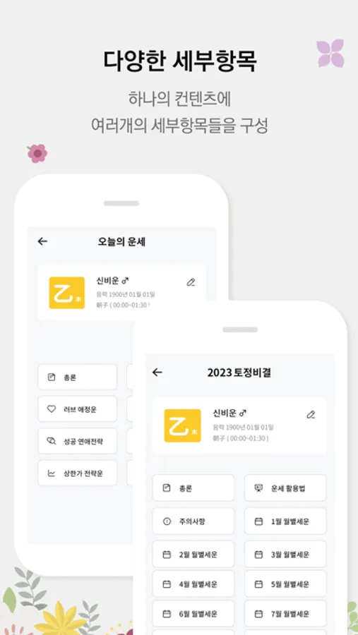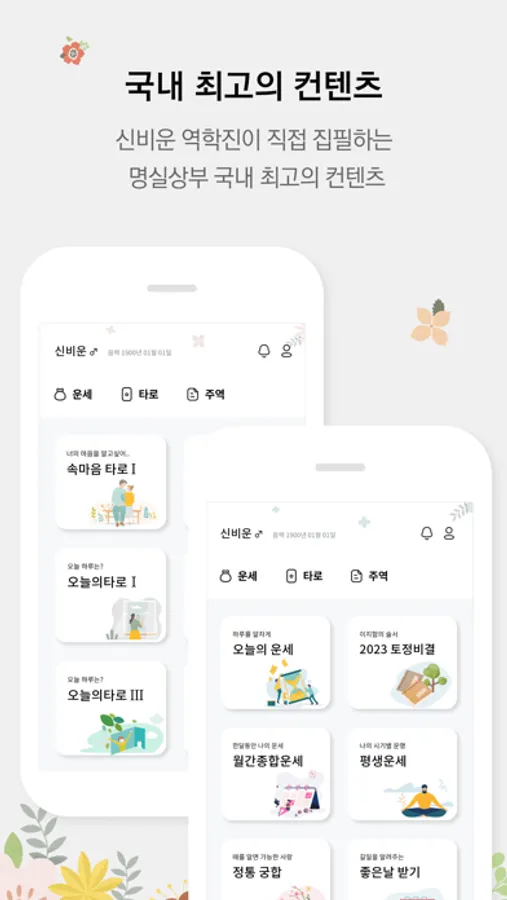 지난 이십여년 동안 꾸준한 사랑을 받아온 신비운닷컴이 유료로 제공되던 컨텐츠를 무료로 제공해드리고자 운세앱을 출시하게 되었습니다.