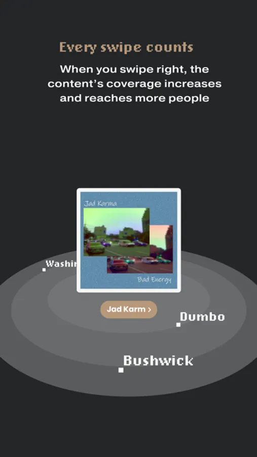 - Every swipe counts - As you interact with artist's content, their visibility increases for all users