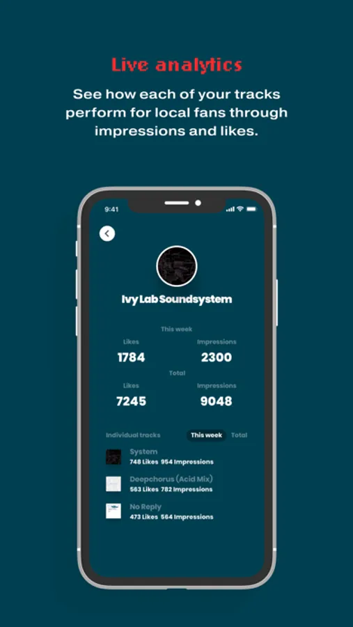 - Live analytics: See how each of your tracks perform for local fans through impressions and likes.