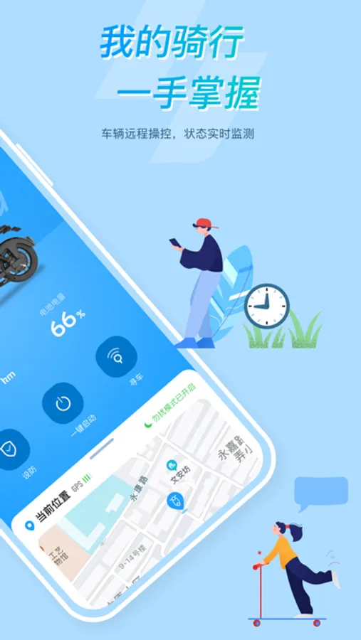 所乐电动 App 主要用于监测车辆的基本状态、对车辆进行近场及远程控制、监控车辆的位置信息和异常信息以及电池状态管理等。