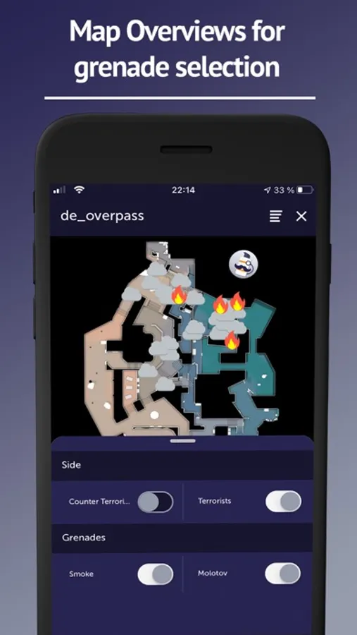 Become Global Elite through over 1500 Smoke, Molotov and Flash grenades in one app. Intuitive and simple handling with easy-to-follow video tutorials in Counter-Strike: Global Offensive.