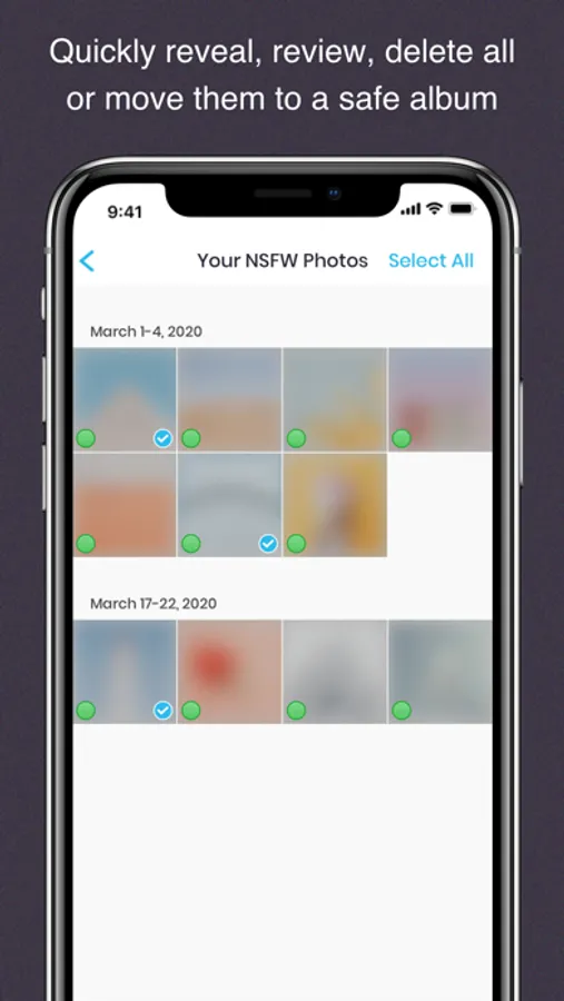 Store your NSFW images in a separate folder or delete them from your phone. The choice is yours. Regain control of your photo album and download PhotoWash today!