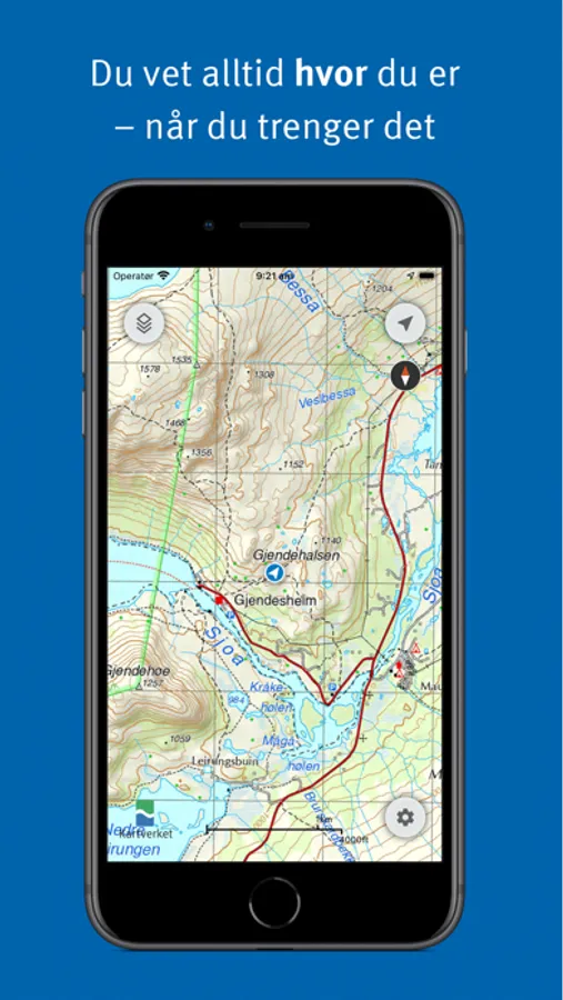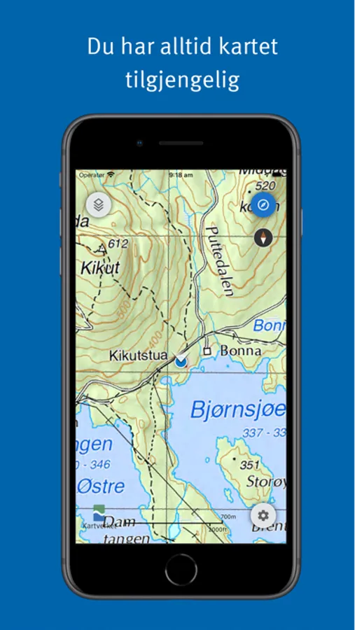 I Hvor?-appen kan du laste kart tilsvarende det som brukes i Norges topografiske hovedkartserie 'Norge 1:50 000' til telefonen din. Du vil alltid ha tilgang til kart på telefonen din, også når du er ute i skog og mark og utenfor dekningsområde. Hvis du lurer på hvor du er, så vil Hvor? vise deg det.