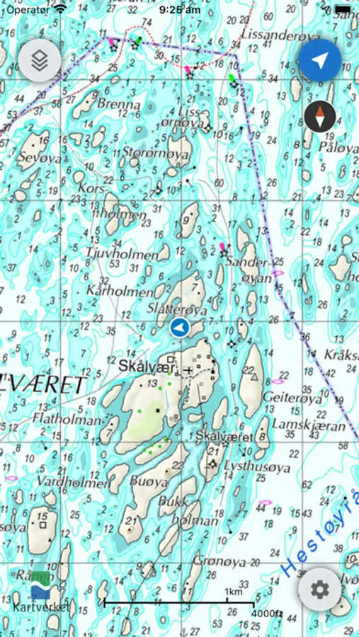 Kun offentlige sjøkart skal brukes ved ferdsel i båt. Derfor er navigasjonsinformasjon som fyr- og lyktesektorer fjernet i kartene som brukes i Hvor?