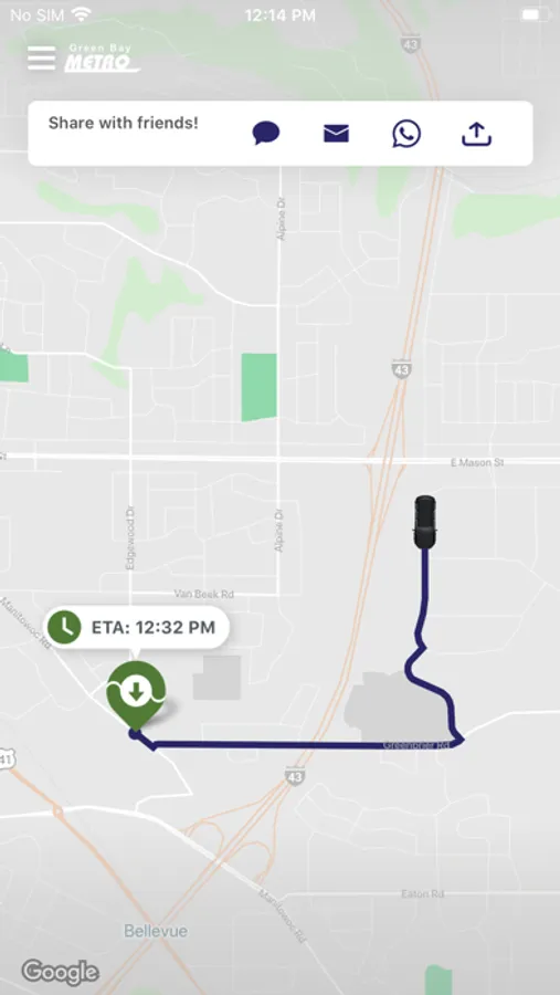 Download the GBM On Demand app today, book your seat and travel in Green Bay. Simply select your pick up and drop off location and one of our vehicles will come to you, using the latest technology to effortlessly match you with other riders heading in your direction!