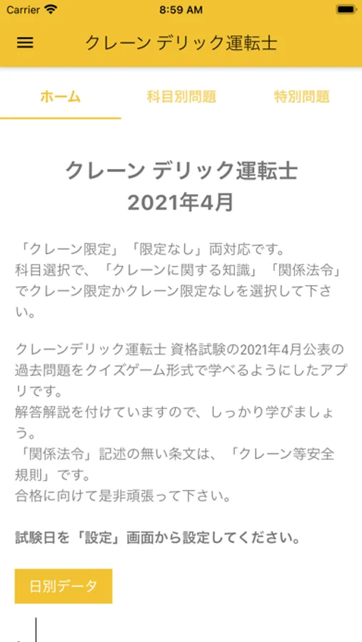 クレーン・デリック運転士 資格試験の2021年4月公表の過去問題をクイズゲーム形式で学べるようにしたアプリです。
