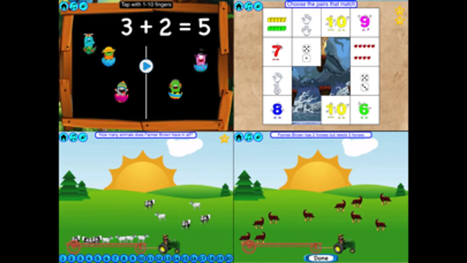 The graphics on this app are cute and engaging for the youngest of kids and this app includes counting, matching numbers - click on a number and the corresponding visual (love this), matching sums which is very similar, but with addition, tracing numbers, Froggie count, and Froggie jump."