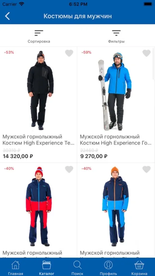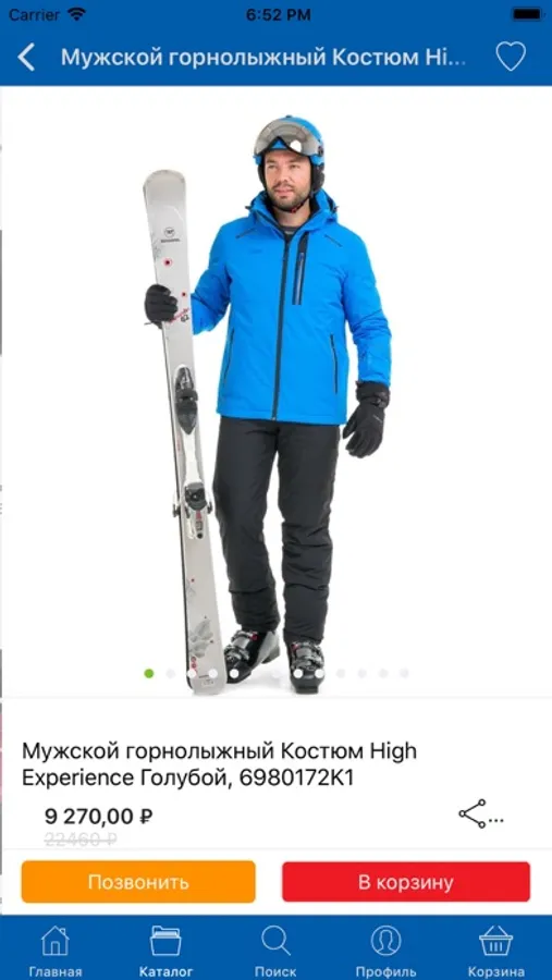 С помощью мобильного приложения вы можете быстро и легко заказать горнолыжный костюм, штаны, куртку, комбинезон, а также повседневную зимнюю одежду: пуховик, перчатки, шапку и многое другое.