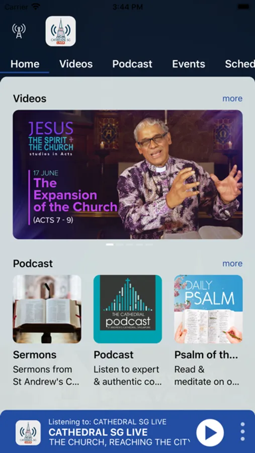 Cathedral SG Live is a community app of St Andrew’s Cathedral. It hosts podcasts, sermons, news and live-streaming radio for the Cathedral community and other Anglicans in the Diocese of Singapore and her deaneries. Website: cathedral.org.sg, anglican.org.sg