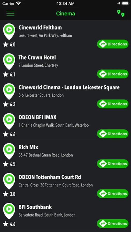 - Find any Cinema nearby you by GPS, then easy to take the direction by Apple Map, GPS search radius can setting by you, example: 5, 10, 20 ... 50 kilometers.