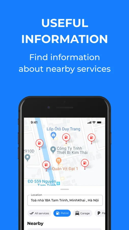 - SOS: Emergency services including wheel change, air pump, rescue team,...