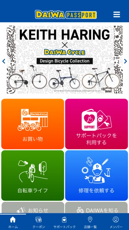 ダイワサイクルでのお買い物がもっとお得に、修理依頼がもっと便利になるアプリ「DAIWA PASSPORT」です。