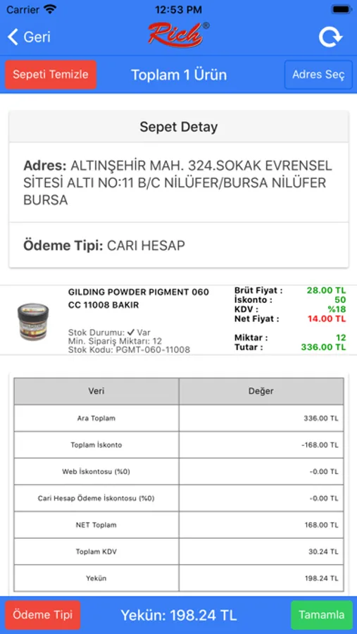 Rich Hobby B2B Sisteminin Mobil Uygulaması.