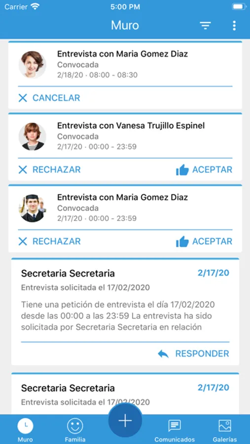 Su principal herramienta es un sencillo muro, en el que puedes consultar de un vistazo la información académica de tus hijos o alumnos tutorizados, las entrevistas programadas con profesores y tutores, o las faltas de asistencia.