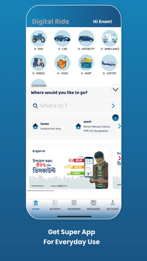 Digital Ride is a ridesharing app for cheap, safer and comfortable ride in minutes—day or night. Digital Ride ridesharing app matches you with a nearby driver who will pick you up and take you where you want to go. With Digital Ride, you just tap a request and driver’s there, and it's easy to pay with credit or cash in select cities.