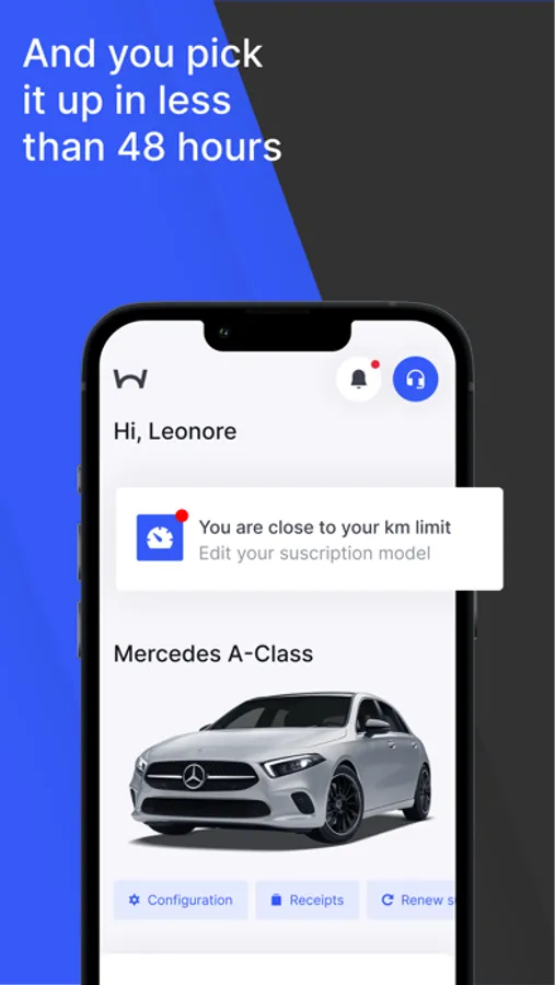 The car subscription is a more advantageous option for those who want the convenience of a car without the hassle of buying or leasing. Drive your car in less than 48 hours, and if you live in Madrid, we’ll deliver it to your home (selected vehicles). Wabi is the future of mobility in your hands. Open the Wabi app to access the full catalogue, choose the car you like best and drive it for a month or as long as you need it. Create your account and enjoy all the features Wabi has to offer: