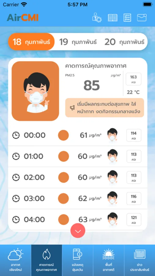 - คาดการณ์คุณภาพอากาศล่วงหน้า 3 วัน แบบรายวัน และรายชั่วโมง