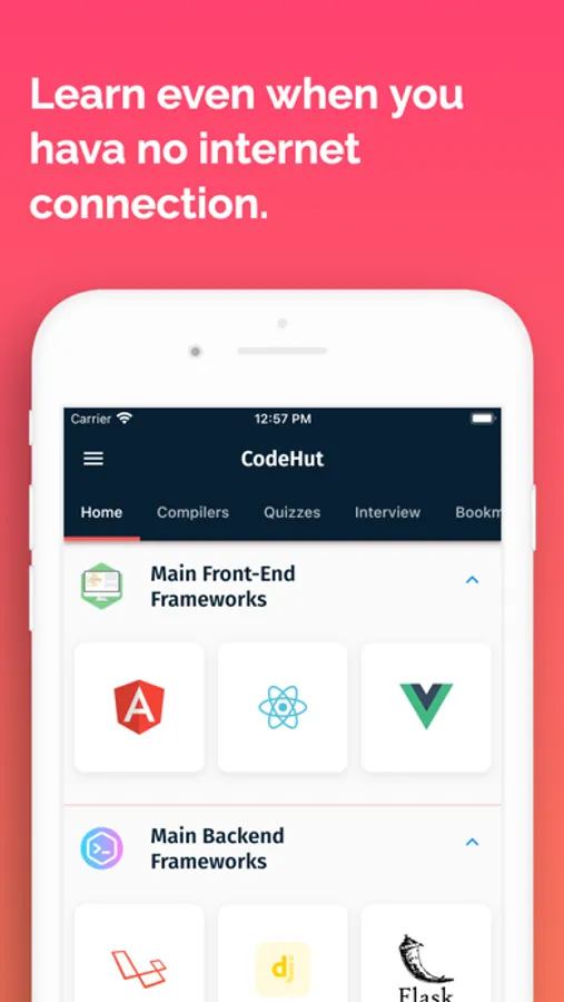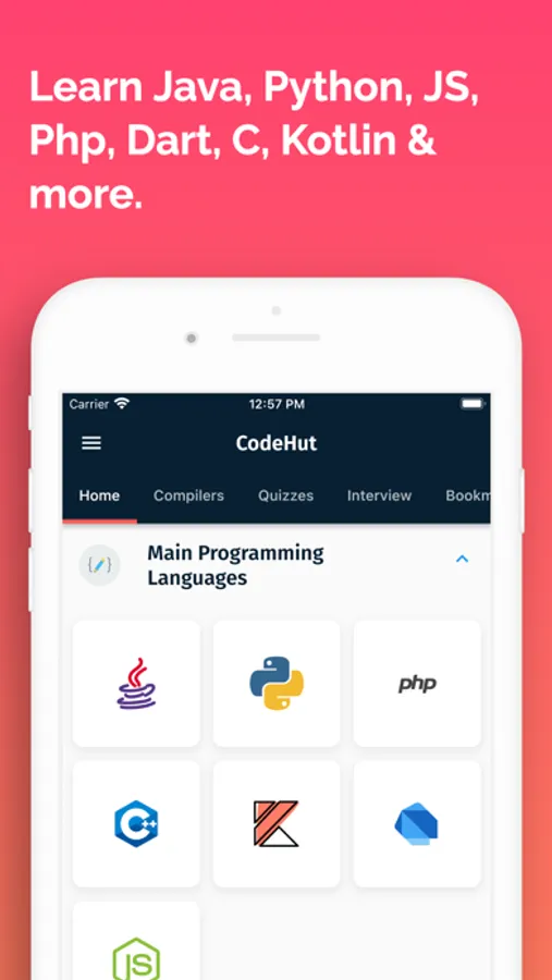 Learn to code anywhere, anytime and become a confident programmer step by step. Learn computer science and learn programming languages. Learn to Code with Programming Languages Compiler. Learn Computer Science + Computer Programming + Computer Basics + HTML + CSS + Java + Dart + Kotlin + Angular + React + Vue.js + Node.js + Express + Laravel + Javascript + Python + C++ , PHP + JQuery + Bootstrap & much more for Free and OFFLINE.
