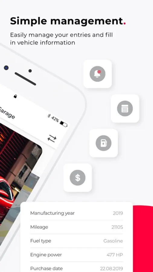 This app has many helpful features. You will have access to a virtual garage where you will be able to store different vehicles such as cars, motorcycles and more. You can upload photos and useful information about your vehicle to the virtual garage for a more organized approach. The virtual garage allows you to easily switch between vehicles and see specific information related to each one of them.