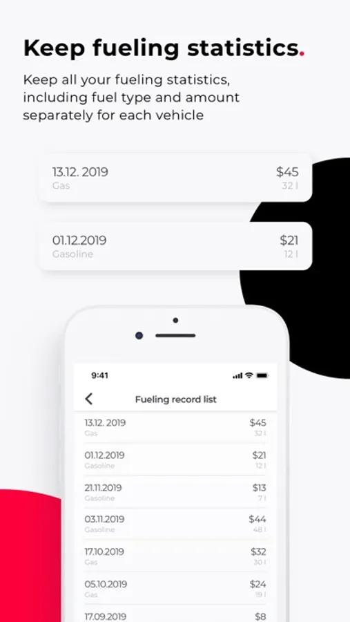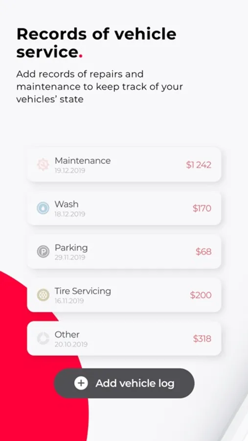 The technical aspect is not the only reason to use Carvis. It is an extremely helpful tool when it comes to income, expenses, and accounting. Carvis helps you keep track of your vehicle-related finances and provides you with helpful graphs that show the evolution of your expenses and income. This feature can be used to optimize your spending! The graphs can display data for different periods of time such as weeks, months, and years. The longer you use Carvis, the better are the results. Possible categories of expenses include: