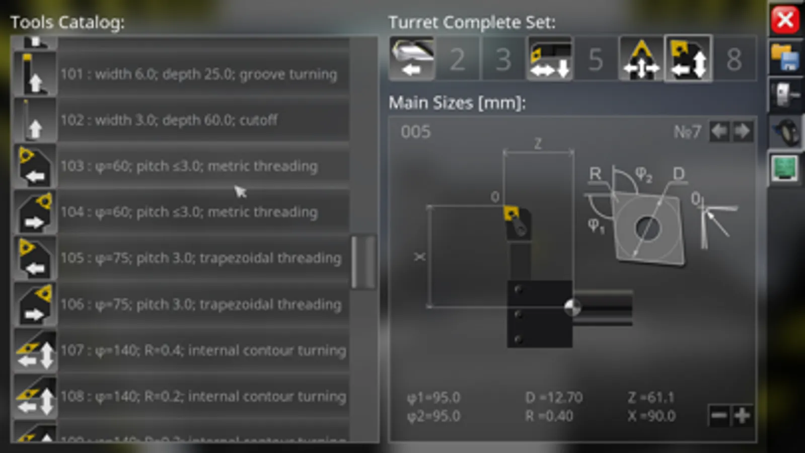 A software simulator of a numerical control (CNC) lathe is an educational methodological development intended for basic familiarization of novice machine building specialists with the principles of programming parts turning operations using standard G/M-code (Fanuc System A).