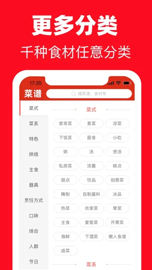菜谱大全包括家常菜、视频菜谱、烘焙、面食、西餐、中餐、鲁菜菜谱、杭帮菜菜谱、儿童食谱、早餐食谱、孕妇食谱、厨房美食、川菜菜谱、粤菜菜谱、小吃、特产等满足不同人的口味需求!
