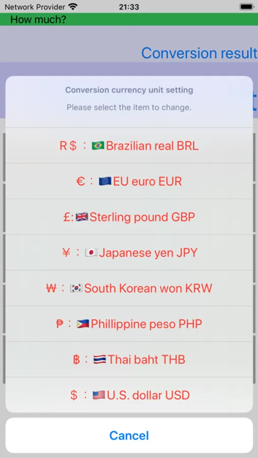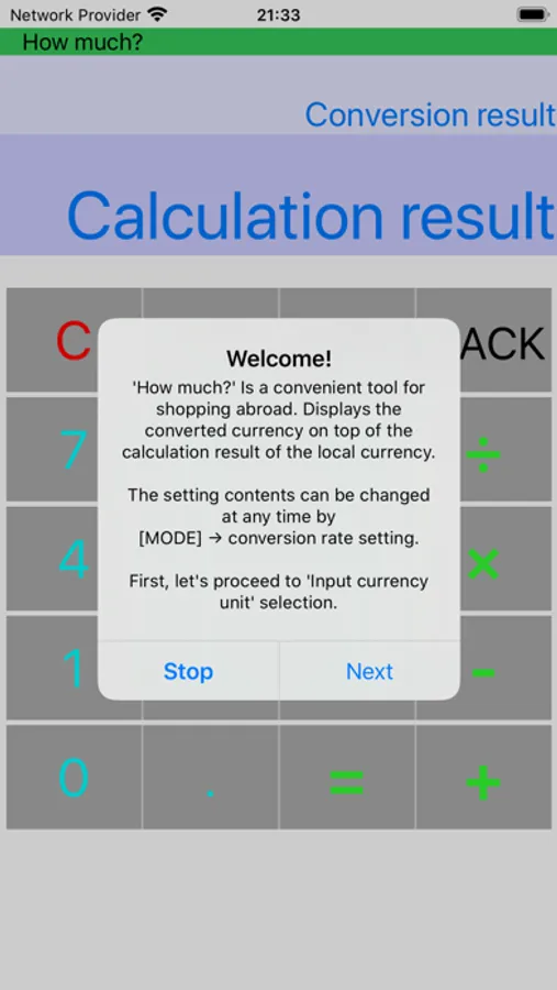 Set the conversion rate on the first launch after installation. The conversion rate setting can be changed later.
