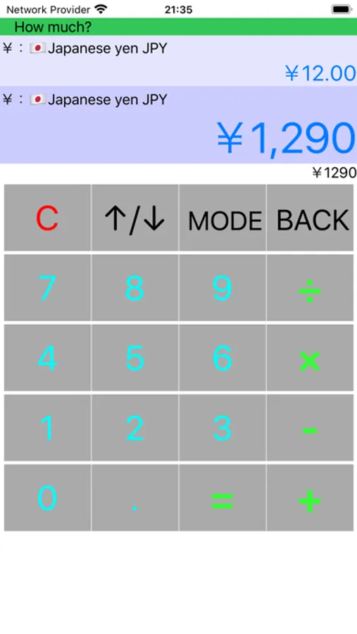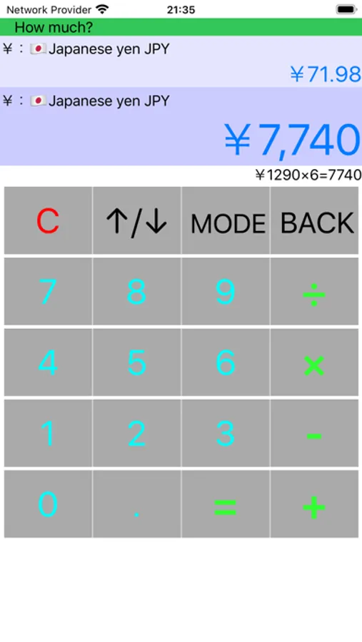 How much will I get if I buy six 120 baht items? ..., you can get the calculation result by touching = after the formula. And it displays the converted amount.