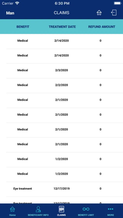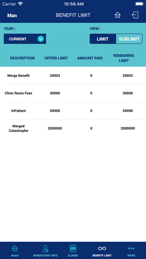 The information includes claims tracking, membership details, medical benefit limit available and claims refund information.