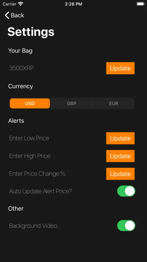Keep an eye on the price of XRP. Easily set alerts so that you know when the price moves. The app's auto price alert feature automatically moves the value of your set alert price by 10%. XRP Tracker updates the value of your XRP bag. Track in USD, GBP or EUR.