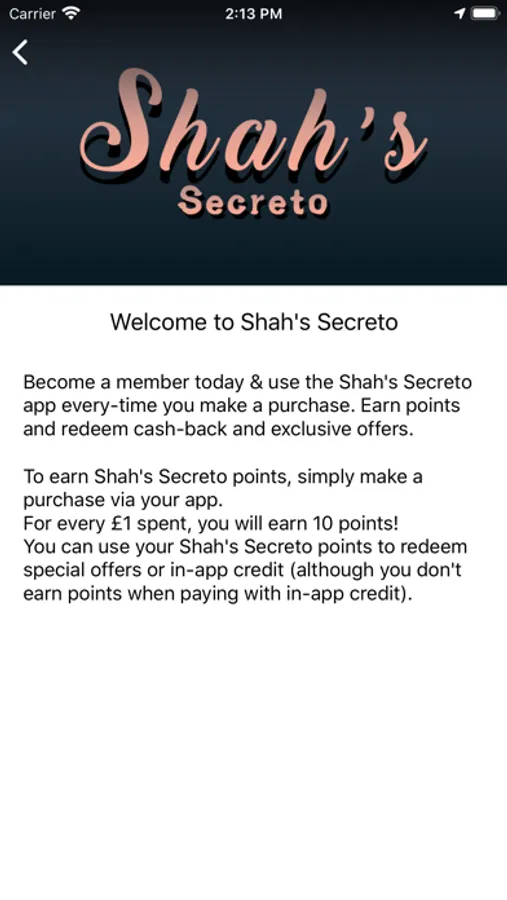 The Shah's Secreto app will make the most of your in-store experience, allowing you to pay through your mobile via
