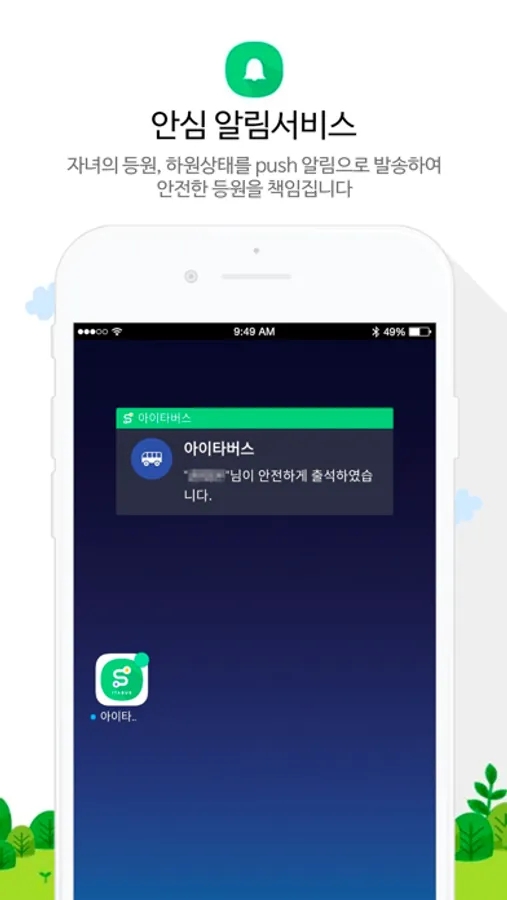> 통학버스의 학원 출발할 때, 정류장 도착할 때 학부모에게 알려줍니다.