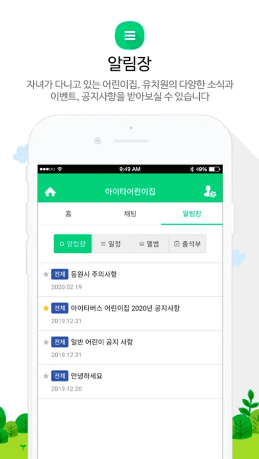 > 원장님이나 선생님으로부터 간단한 메시지는 1:1 채팅으로 주고 받으세요.