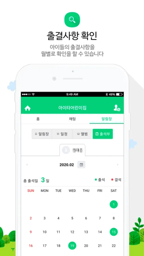 > 아이가 결석을 하거나 버스를 탑승하지 않을 경우 앱의 버튼 하나로 간단히 선생님과 기사님에게 알려줍니다.