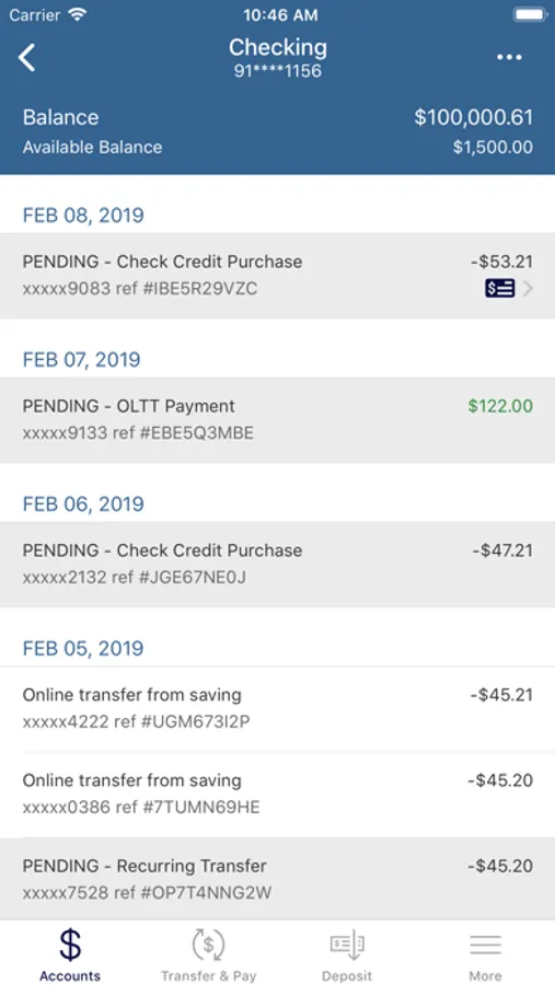 • View recent transactions, including check images