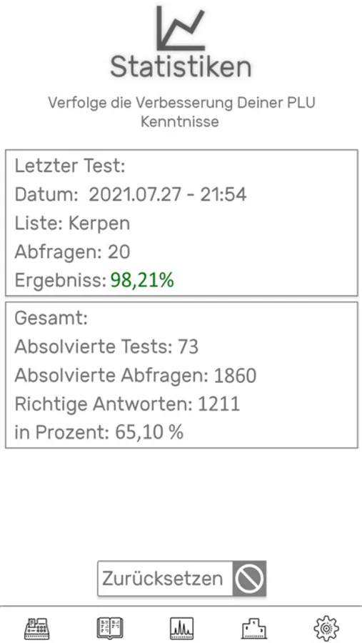 Manage your own lists, use your own photos, or the internal gallery, watch the improvement of your PLU knowledge! Learn easy and fast.