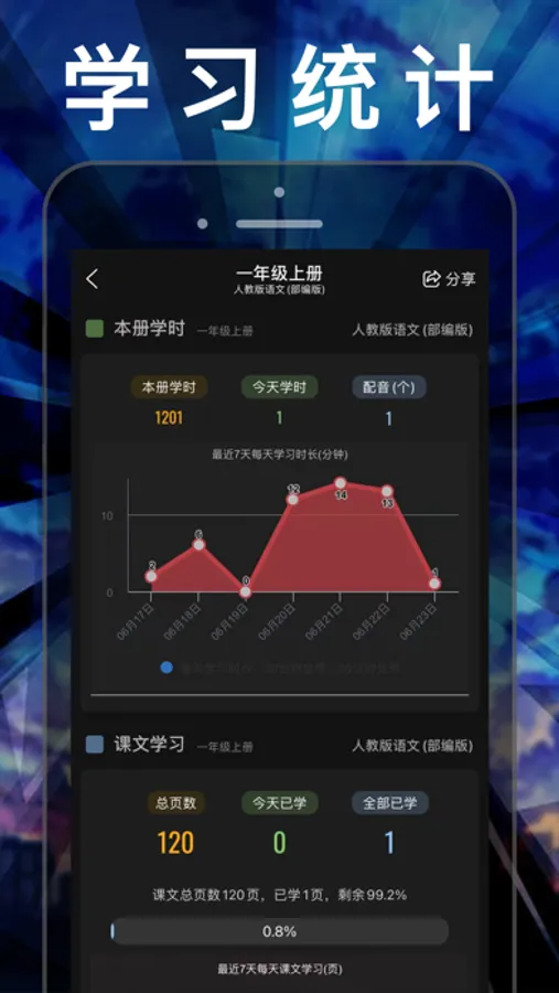 ·学习成就:图表统计学习情况,孩子的学习情况、训练成果一目了然。