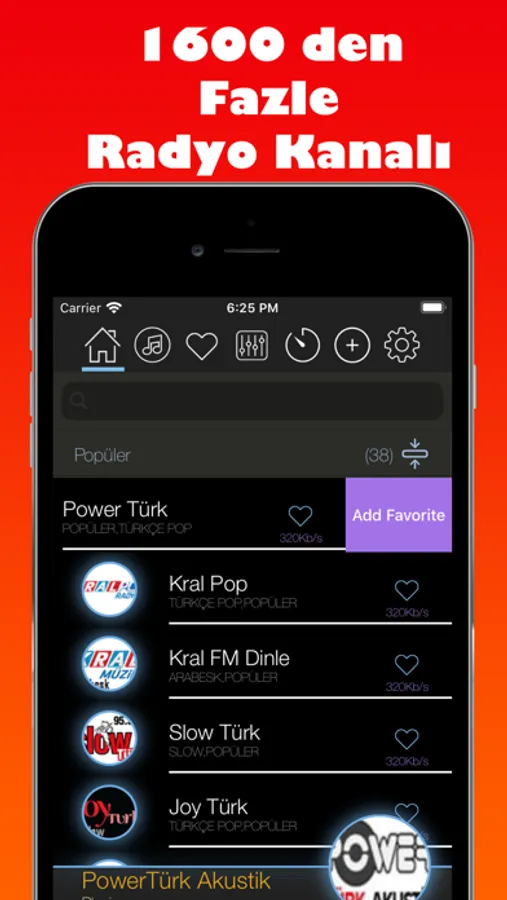 You can navigate between the radios you choose carefully; You can search the radio by name and add it to your favorites.