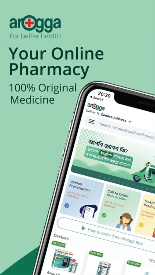 With Arogga app, getting the medicine you need is simple. Download the easy-to-use Arogga App to conveniently order your medicines from anywhere, at anytime. Just tap the App, upload your required medications, and your order will be delivered at your doorstep. Use the Arogga healthcare app to Order/Refill Your Medicines, Store Your Medical Records, Track Your Order, Check Arogga cash, Refer Your Friends & Earn!