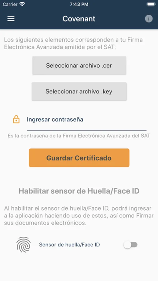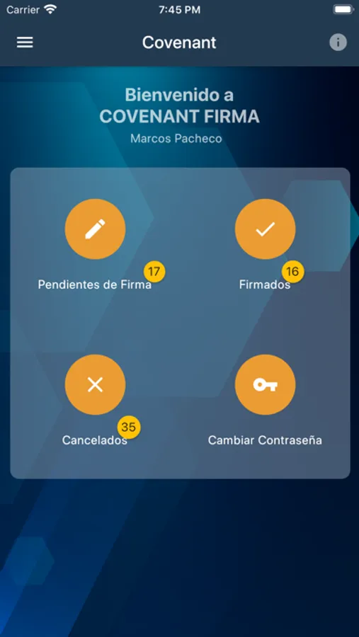 Covenant Firma es una solución informática móvil orientada a la generación del proceso de firma electrónica avanzada sobre los documentos digitales o electrónicos que son enviados entre empresas, dando validez y certeza jurídica de uno o más actos jurídicos que se lleven a cabo dentro de la República Mexicana, donde, además de realizar el proceso de la firma electrónica, usted podrá administrar los documentos que ha firmado o en caso contrario cancelado, así mismo, podrá visualizar la representación gráfica (*.PDF) y el valor de firma (*.XML) del documento firmado o el acuse de cancelación de del documento.