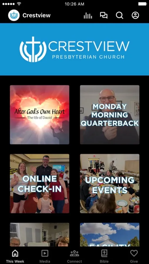 Connect and engage with the Crestview Church app! Connect with groups, watch Sunday services, listen to our podcasts, learn and participate in our mission projects, fill our prayer requests, read the Bible, and get involved with many adult, youth, and community events, and more!