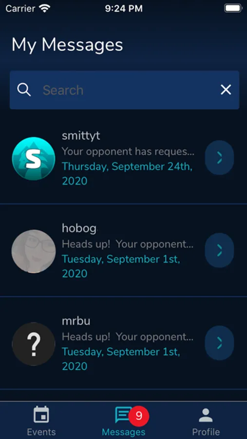The purpose of this app is to help you connect with and engage with your opponents in your leagues and tournaments. Within this app, you may message and communicate with others and receive notifications for games you have signed up to play.