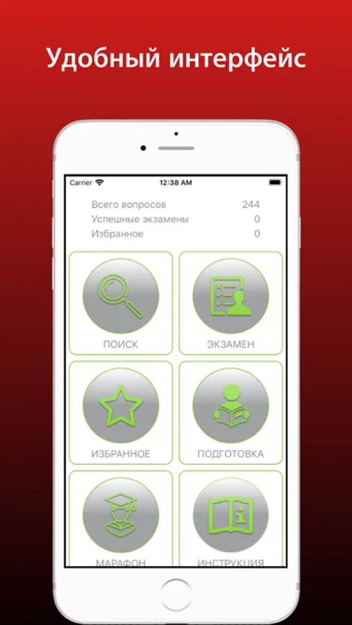 Программа позволяет пройти тестирование по актуальному на данный момент списку из 244 вопросов.