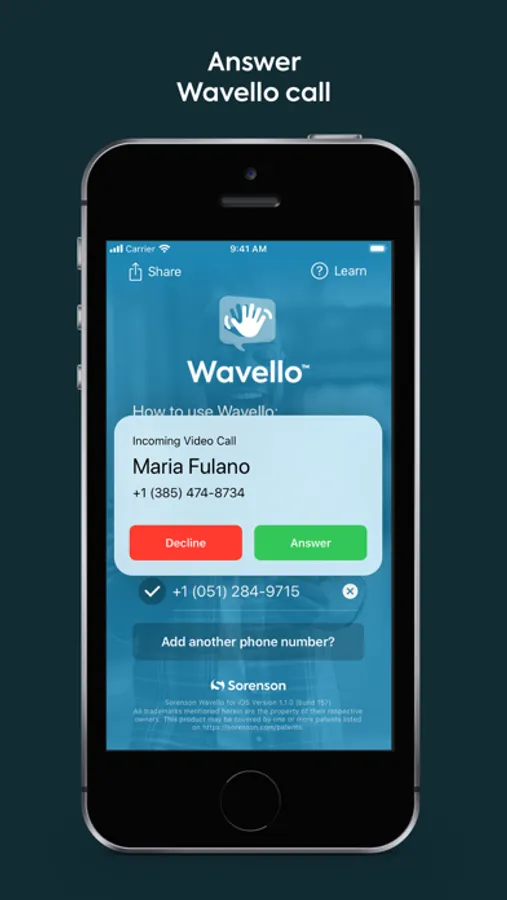 Be Seen! Revolutionize your relay conversations! With Sorenson Wavello, everyone sees each other during video relay calls. Sorenson continues to innovate so you can experience communication in a new way. To get started, simply download the Sorenson Wavello app and register your voice phone number today. Come on, Be Seen by your Deaf family and friends through Sorenson Relay.