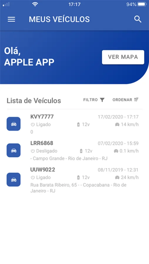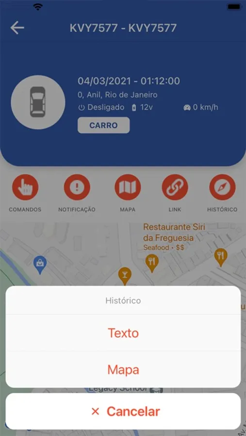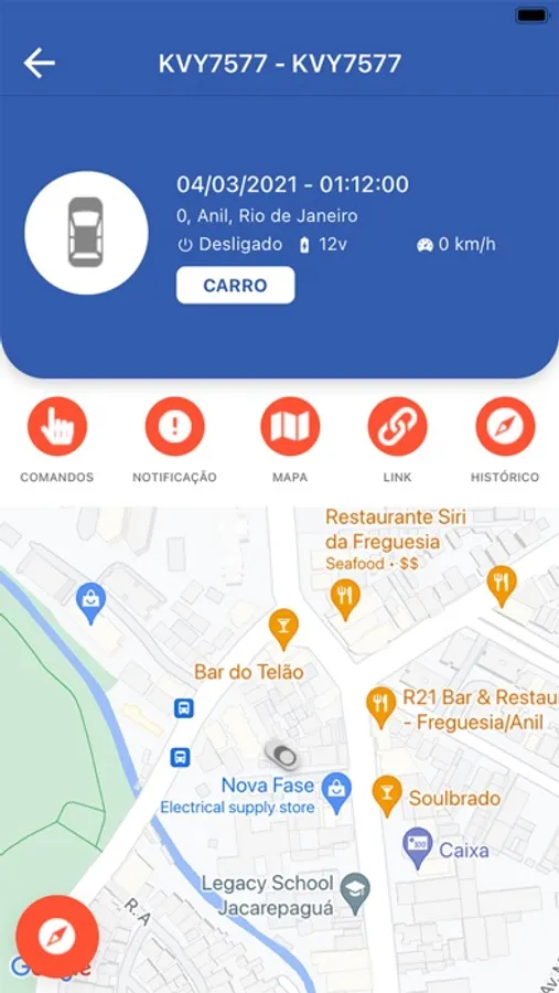 - Visualizar informações de bateria, velocidade, ignição, etc.