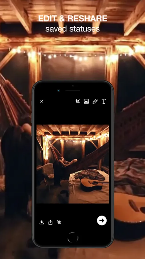 The editor features over 40 handcrafted filters with live previews, color correction, effects, text designs, stickers and much more for you to create amazing statuses.