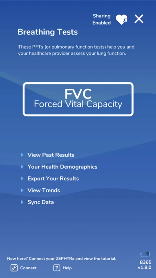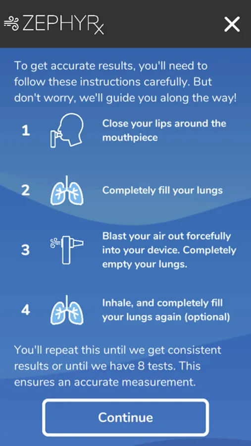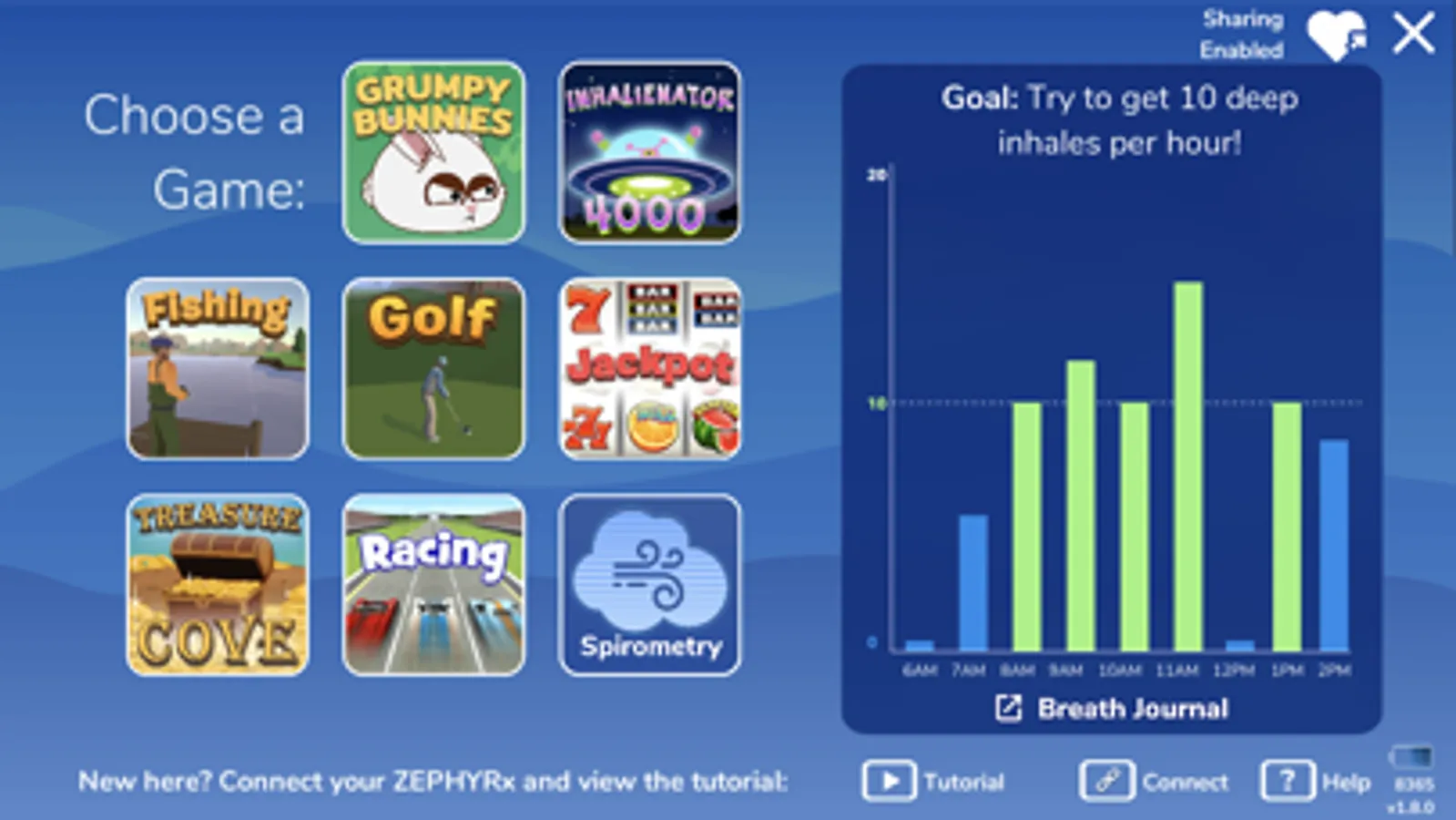 The ZEPHYRx Breathe Easy app is very intuitive and easy to use with step-by-step instructions and motivational messages throughout your spirometry test. It connects to a personal spirometer via Bluetooth, captures test results and sends that data to a secure, web-based provider dashboard in real-time. Breathe Easy offers key features like spirometry task reminders, built-in video call enabling your provider to coach you through your test, and eight breathing exercise games.