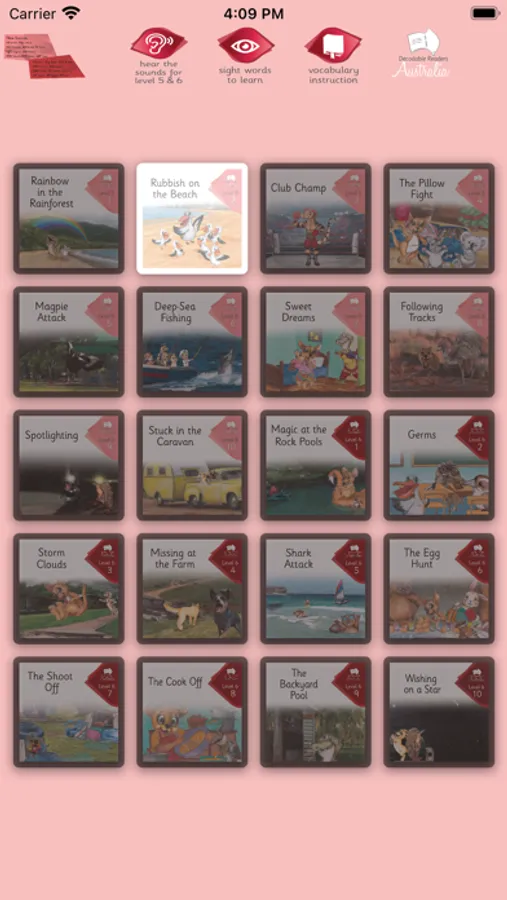 Each story in Level 5/6 can be enjoyed by listening to the professional audio or read aloud with the support of tapping and hearing the word if required. The audio function can be controlled independently within each page. Both parents and teachers can continue to support children with vocab and comprehension development through using the post-reading activities provided within each story. An addition to the Level 5/6 readers are the wide range of pre-reading activities that can be used to help set the purpose for reading.