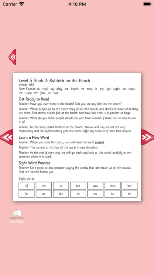 The Decodable Readers Australia books support a systematic approach of learning to read. This approach ensures kids are given the “right-fit” book. Decodable, or phonic readers, only contain words made up of the sounds a child has learnt. Within each level in the Decodable Readers Australia Series, a new group of sounds is introduced. As children move through each level the sounds progress from simple to complex.